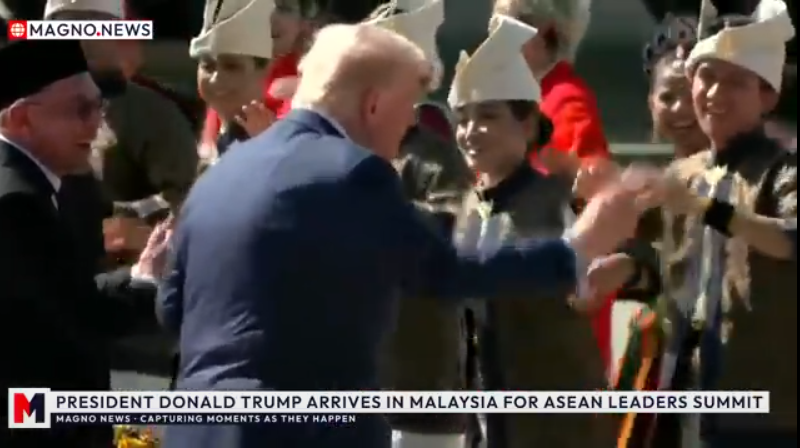Trampı Malayziyanın Baş naziri Anvar İbrahim qarşılayıb. Qısa söhbətdən sonra ABŞ lideri onu qarşılayan yerli sakinlərin rəqsinə qatılmaq qərarı verib və bu addımı alqışlarla qarşılanıb.