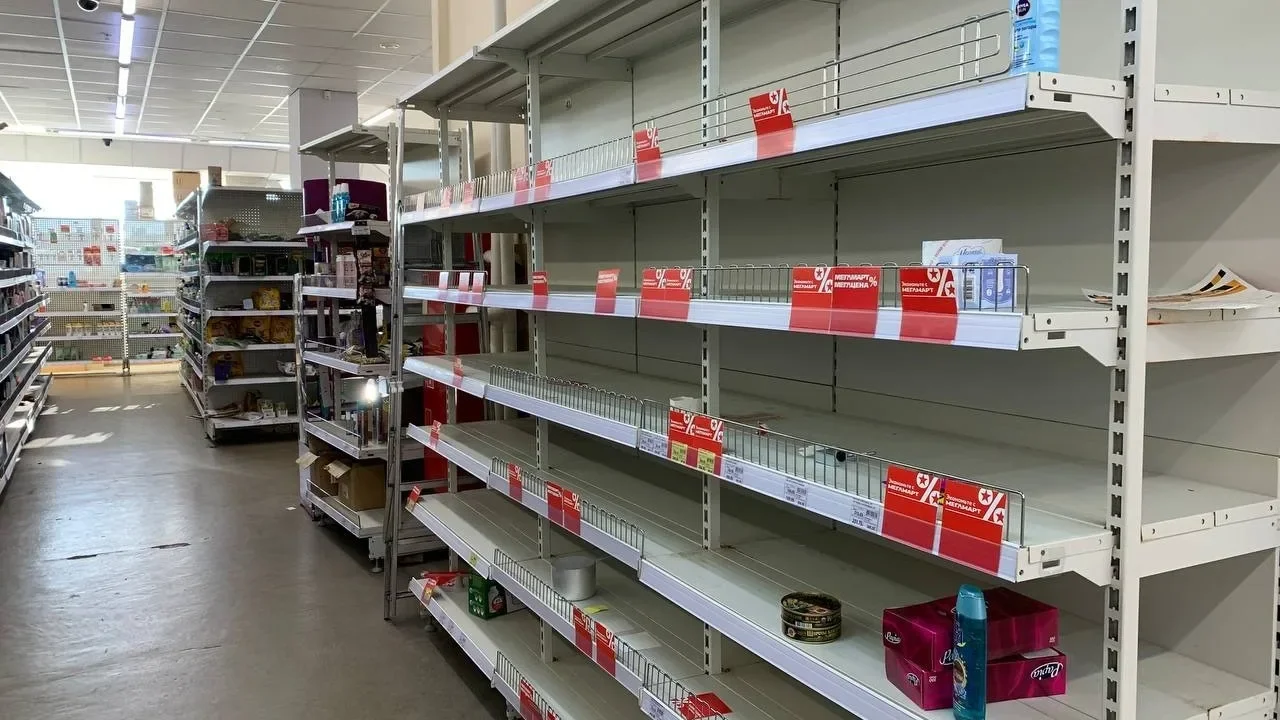 Publika.az "RIA Novosti"yə istinadla xəbər verir ki, şəhərin iri ticarət obyektlərində təzə ət, quş əti, balıq və tərəvəzlər tamamilə satılıb, yarımfabrikatların soyuducuları isə boş qalıb.