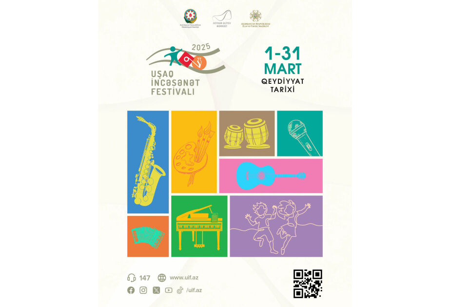 Mədəniyyət Nazirliyi, Elm və Təhsil Nazirliyi, Heydər Əliyev Mərkəzinin birgə təşkilatçılığı ilə keçirilən Uşaq İncəsənət Festivalı-2025 Azərbaycanın müxtəlif bölgələrindən olan, yaradıcılıq bacarıqlarına güvənən, 6-17 yaş aralığında bütün uşaqlar və yeniyetmələri peşəkar və həvəskar kateqoriyalar üzrə festivalda iştirak etməyə dəvət edir.