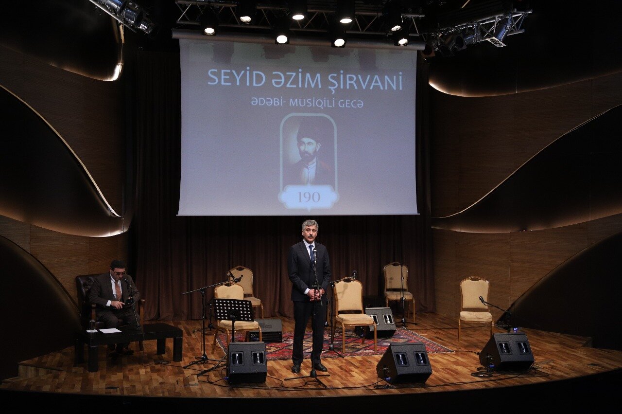 Noyabrın 27-də Beynəlxalq Muğam Mərkəzində Mədəniyyət Nazirliyinin təşkilatçılığı ilə böyük mütəfəkkir şair Seyid Əzim Şirvaninin 190 illiyi münasibətilə ədəbi-bədii gecə keçirilib.