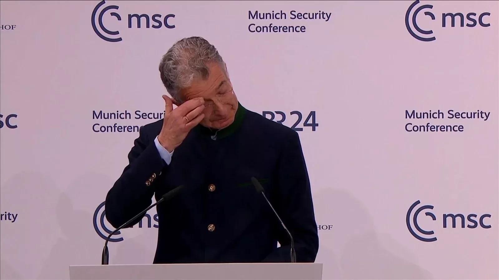 Münhen Təhlükəsizlik Konfransının rəhbəri Kristofer Heusqen tədbirin bağlanış mərasimində çıxış edərkən, göz yaşlarına boğulub.