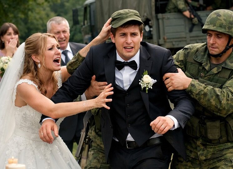 Odessada təntənəli nikah mərasimi gözlənilmədən uğursuzluqla nəticələnib - tədbirin tən ortasında bəy hərbi komissarlığın nümayəndələri tərəfindən aparılıb.