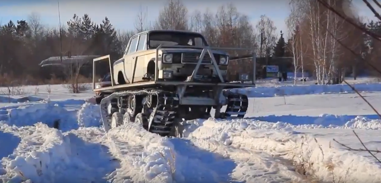Rusiyalı mühəndislərdən biri "Jiqulu" avtomobilindən və tankdan maraqlı nəqliyyat vasitəsi hazırlayıb.