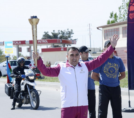 Bədən tərbiyəsi müəllimi Ülkər İbrahimova, məktəbli Səyyarə Səmədzadə, mədəniyyət işçisi Kamran Əsədov, boks üzrə gənclər arasında ölkə çempionatının qalibi Elmar Abbasov və finalçısı Həsənağa Həsənov, boks məşqçisi Xəyal Mustafayev, “Neftçala” futbol klubunun məşqçiləri Mehman İbrahimov və Fəxrəddin Mürvətov Mirzə Ələkbər Sabir küçəsi və Heydər Əliyev prospekti boyunca 4 kilometrə yaxın yolu qət edərək məşəli növbə ilə daşıdılar.