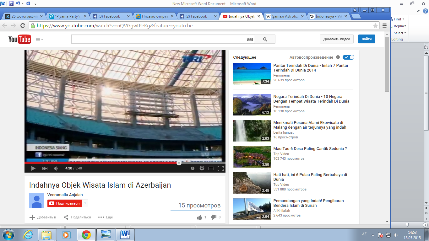 Publika.az bu ölkənin mətbuatına istinadən xəbər verir ki, proqramda Azərbaycan, İslam ənənələri, respublikamızın tarixi yerləri barəsində ətraflı məlumat verilib. Cakarta jurnalistləri xüsusi reportajda ölkəmizdə İslamın yayılmasi, dini tolerantlığı, Azərbaycanın mədəniyyətini əks etdiriblər. Verilişdə qeyd olunub ki, Avropa və Asiyanin kəsişməsində yerləşən respublikamız son illər beynəlxalq tədbirlərə ev sahibliyi edir. İndoneziya jurnalistləri gələn ay ölkəmizdə keçiriləcək ilk Avropa Oyunlarına xüsusi yer ayırıblar və bu ölkədən olan turistlər üçün Azərbaycanda hərtərəfli şəraitin yaradıldığını çatdırıblar.