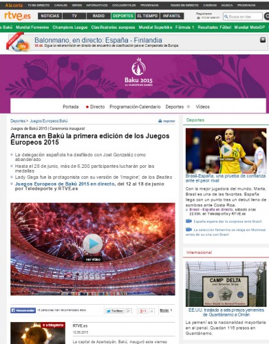 İspaniyanın RTVE televiziya kanalı birinci Avropa Oyunlarının açılış mərasiminə həsr olunan geniş reportaj yayımlayıb.