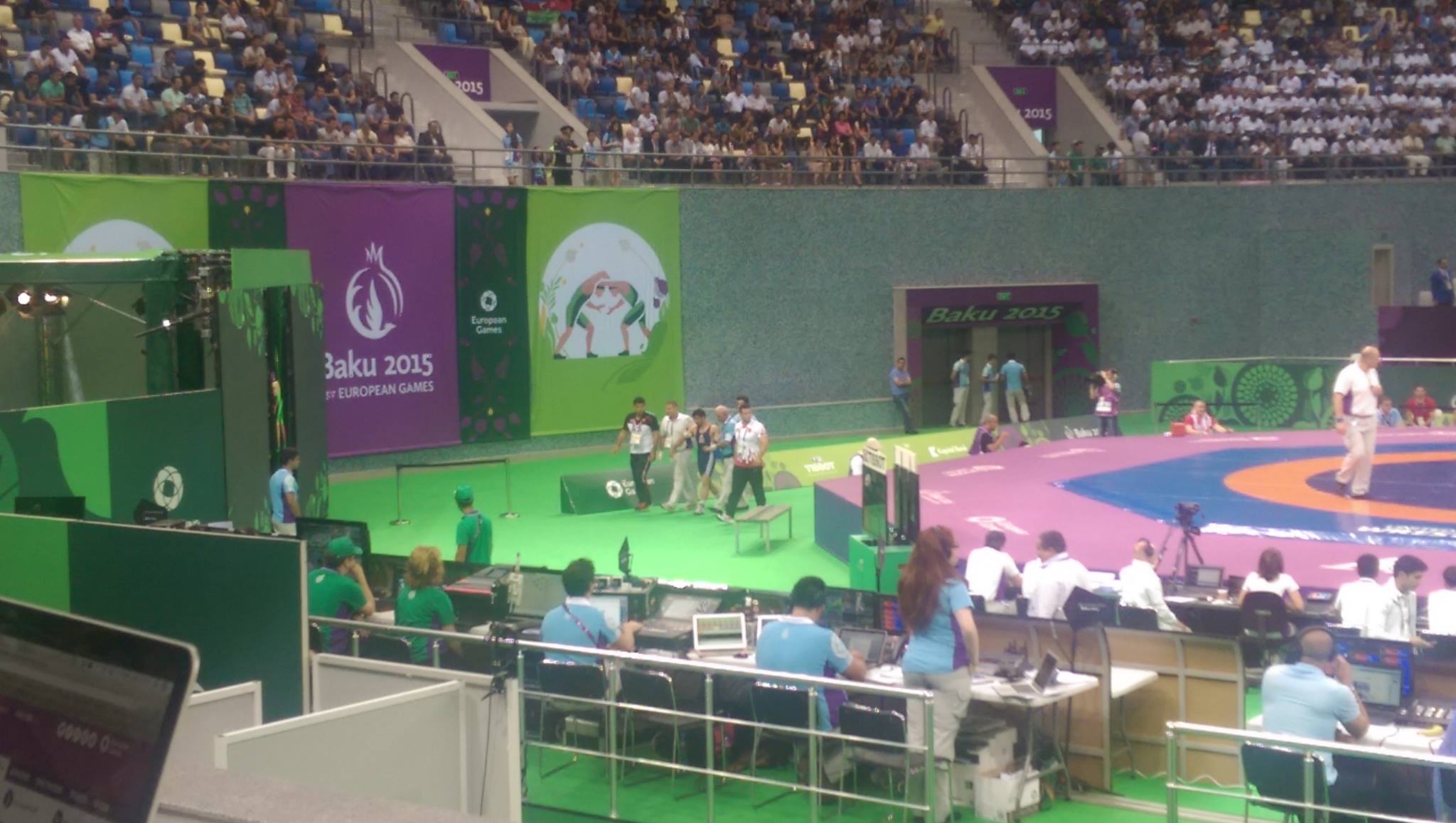 İlk Avropa Oyunları çərçivəsində keçirilən Yunan-Roma güləşində baş tutan döyüşlərin birində gərgin anlar yaşanıb.