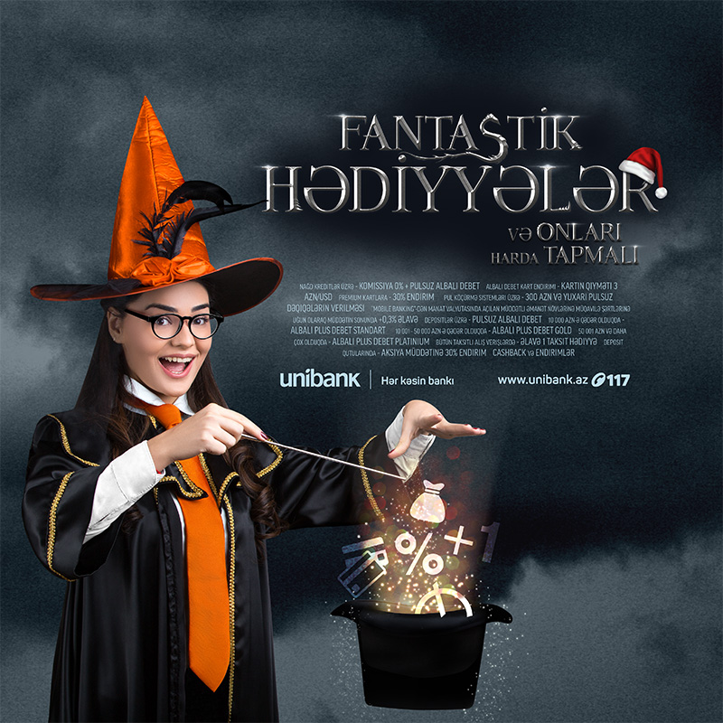 İndi Unibank fantastik Yeni il hədiyyələrinin ünvanına çevrilib. Yeni il ərəfəsində Unibank-dan kredit və ya debet kartı alan, pul köçürən, əmanət yerləşdirən, Unibank kartları ilə alış-veriş edən hər kəsi endirimlər və hədiyyələr gözləyir!