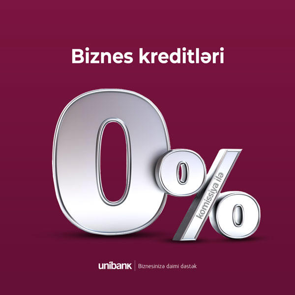 Böyük işlərə başlamağın əsl vaxtıdır. Unibank yerli biznesə dəstək məqsədi ilə biznes kreditlərini komissiyasız etdi. Hansı sahədə biznesi olmasından asılı olmayaraq, VÖEN sahibi olan hər bir iş adamı indi “Unibank”dan 50.000 AZN-dək krediti komissiyasız götürə bilər. Biznes sahibləri istədikləri vaxt 0% komissiyalı biznes və mikro kreditlər üçün “Unibank”a müraciət edə bilərlər.