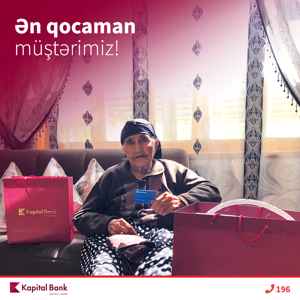 Hər il olduğu kimi Kapital Bank 1 oktyabr – Beynəlxalq Ahıllar Günü ərəfəsində maraqlı sosial aksiyalar həyata keçirir. Bu il ahıl insanlar üçün hazırlanan tədbirlə yanaşı, həmçinin Kapital Bank-ın əməkdaşları bankın ən yaşlı müştərisinə baş çəkib, onu qarşıdan gələn bayram münasibətilə təbrik edib.