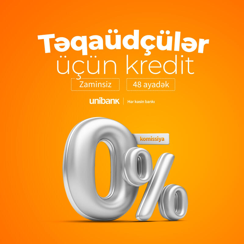 Təqaüdçülər üçün sərfəli kredit şərtləri təklif edən Unibank, növbəti kampaniyasını elan edib. İndi “Unibank”da təqaüdçülər üçün kredit komissiyasızdır. Fevralın 29-dək “Unibank”dan kredit götürən bütün təqaüdçülər, 20.000 AZN-dək krediti 0% komissiya ilə əldə edə biləcəklər. Kampaniyadan rəsmi gəliri 100 manatdan başlayan hər bir təqaüdçü faydalana bilər.