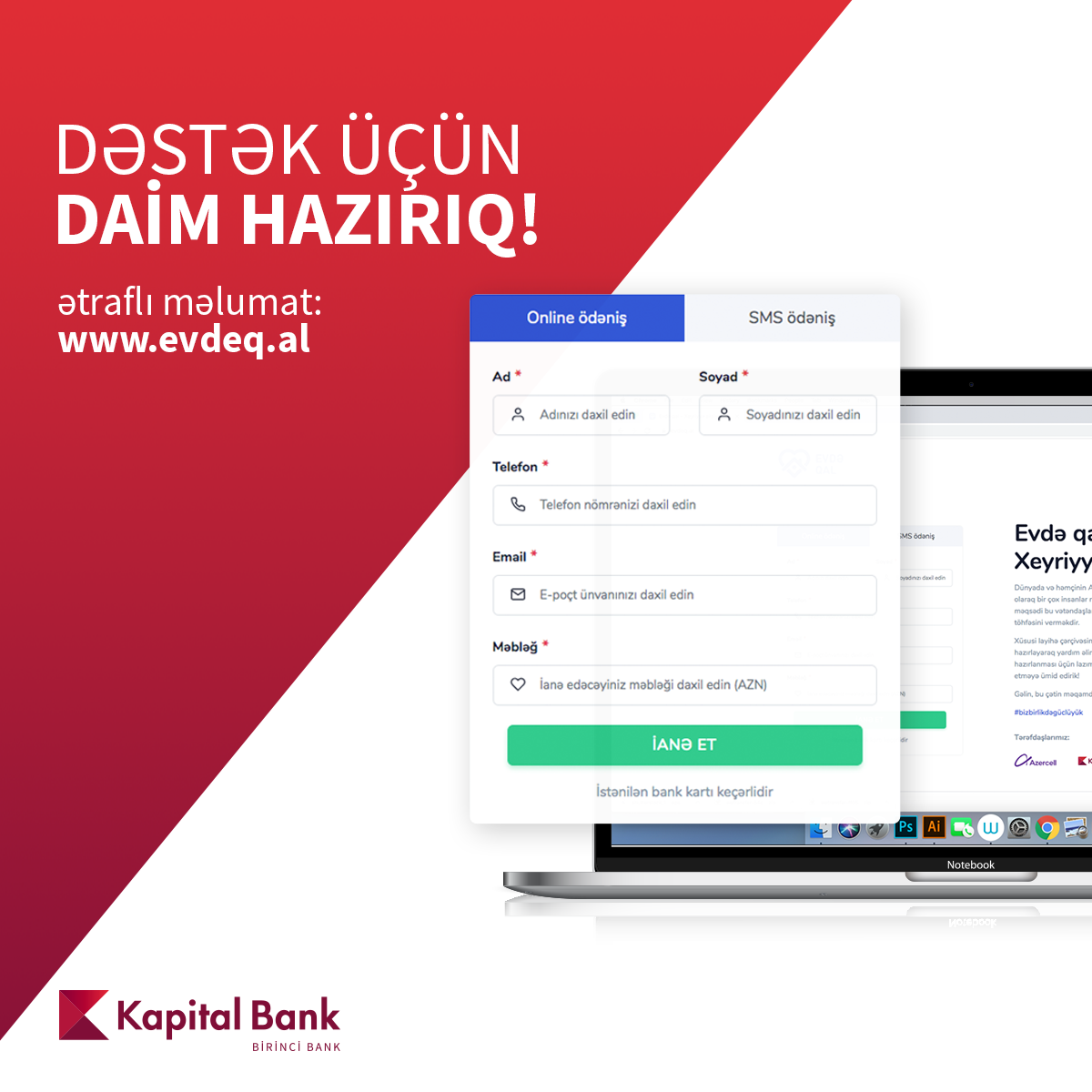 Qeyd edək ki, xeyriyyə təşəbbüsünə qoşulmaq istəyənlər www.evdeq.alsaytındakı anketi doldurmaqla həmin təşəbbüsü dəstəkləyə bilərlər.