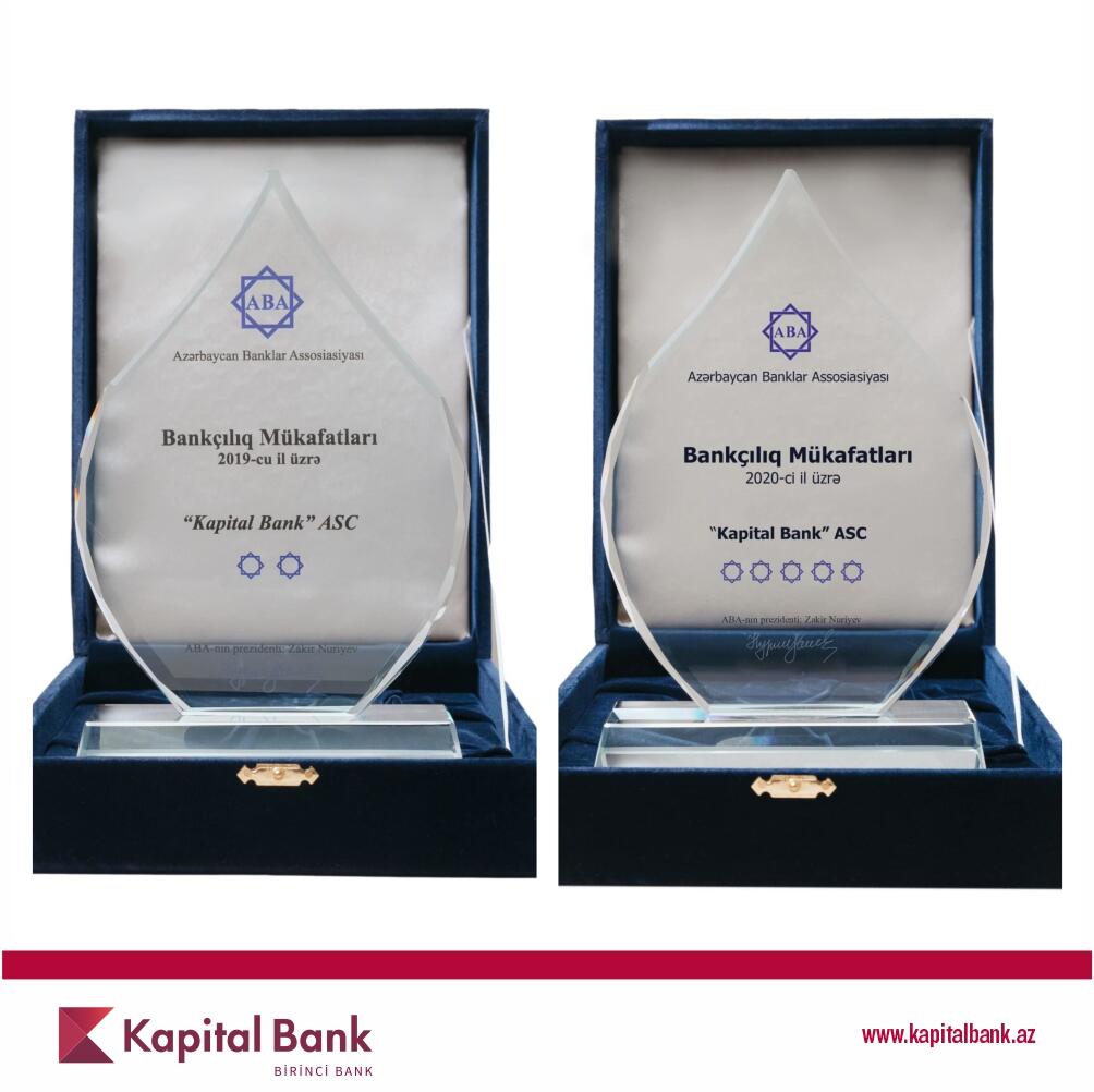 Azərbaycan Banklar Assosiasiyasının (ABA) təşkilatçılığı ilə ənənəvi “Bankçılıq Mükafatları – 2019/2020” mükafatının qalibləri müəyyən olunub və Kapital Bank 7 nominasiya üzrə qalib olaraq mükafatlar qazanıb.