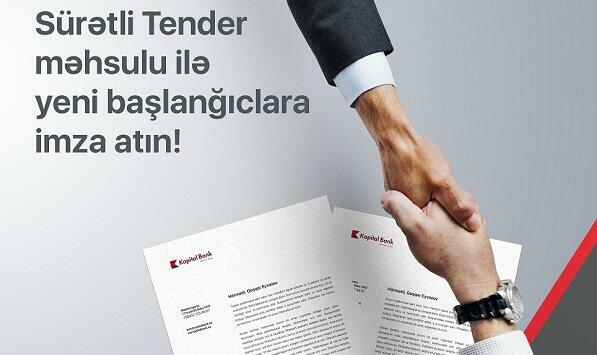 Kapital Bank hüquqi şəxslərə və sahibkarlıq fəaliyyəti ilə məşğul olanlara ölkədə həyata keçirilən layihələrdə iştirak etmək üçün “Sürətli tender” məhsulunu təklif edir.