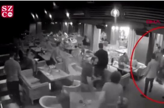 Görüntülərin İstanbulun Beşiktaş səmtində yerləşən bir restoranın təhlükəsizlik kameralarının qeydə aldığı vurğulanıb.