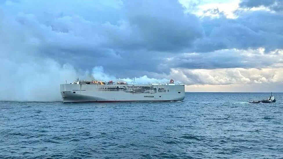 Minlərlə avtomobil daşıyan gəmi yandı
