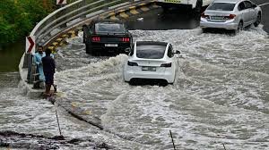 Şəhərin küçələri tamamilə su ilə dolub, nəticədə bir çox lüks avtomobil zərər görüb. Avtomobillərin, sözün əsl mənasında, yolboyu üzdüyü görünür.