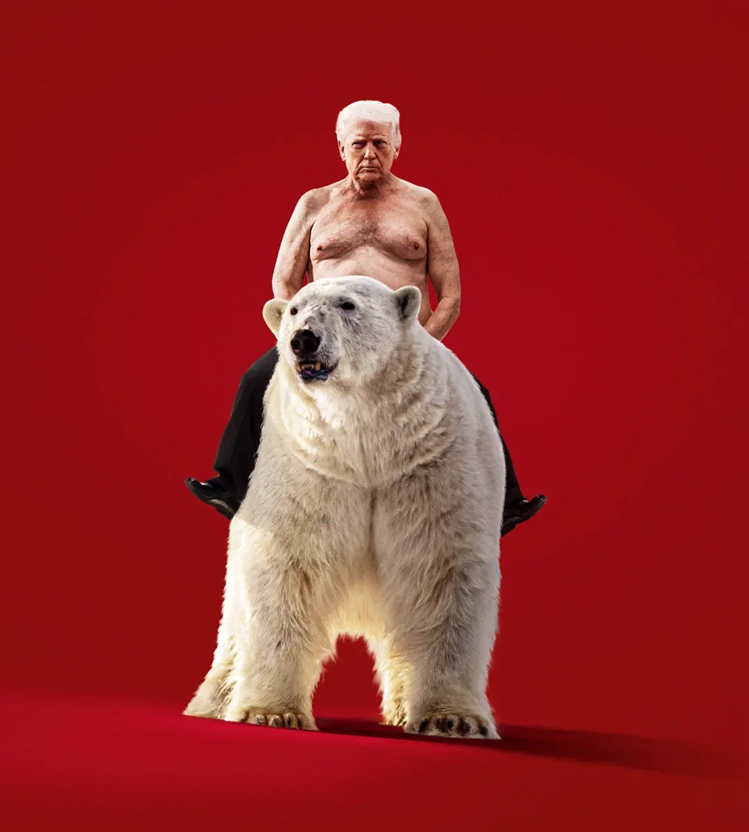 Publika.az xəbər verir ki, jurnal bu dəfə ABŞ prezidenti Donald Trampın ağ ayıya mindiyini təsvir edən üz qabığı yayımlayıb.