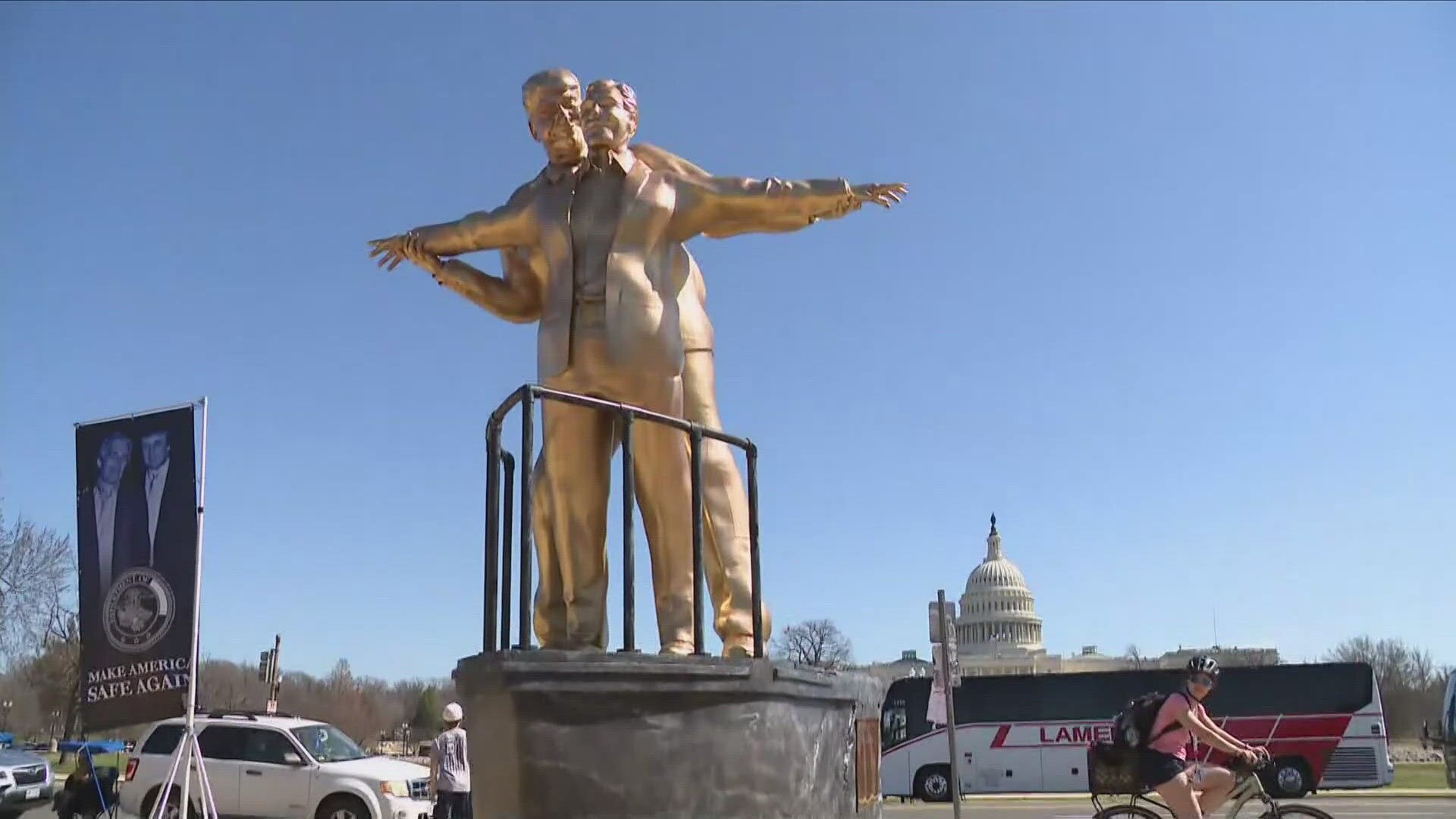 Vaşinqtonda heykəl peyda oldu: Tramp və Epşteyn "Titanik"-də - Foto