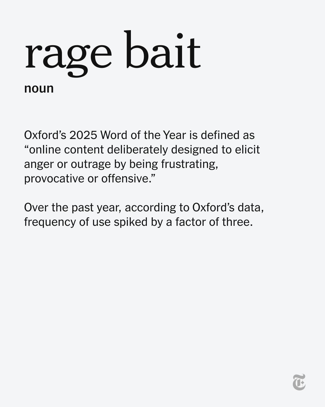 Oksford İngilis dili lüğəti "qəzəb yemi" (hərfi mənada "qəzəb üçün yem") ismini 2025-ci ilin sözü adlandırıb.