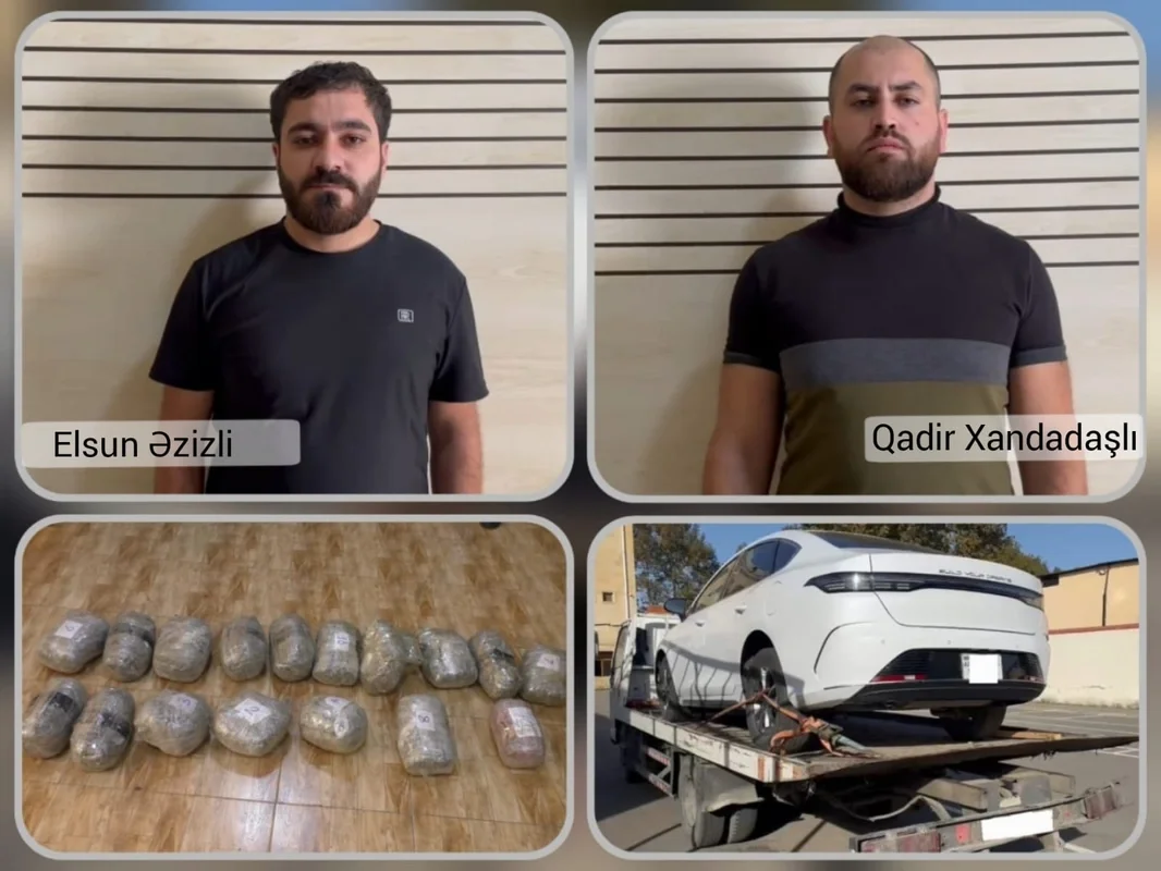Bildirilib ki, diqqət çəkməmək və ifşa olunmamaq məqsədilə narkokuryerlər - 29 yaşlı Qadir Xandadaşlı və 27 yaşlı Elsun Əzizli əvvəlcədən gizlədilmiş yerdən götürdükləri narkotikləri fərqli üsulla daşımağa cəhd ediblər. Onlar Q.Xandadaşlıya məxsus yük yerində 16 kiloqram marixuana gizlədilmiş avtomobildə guya qəfil nasazlıq baş verdiyi görüntüsünü yaradaraq evakuator xidmətinə müraciət ediblər.