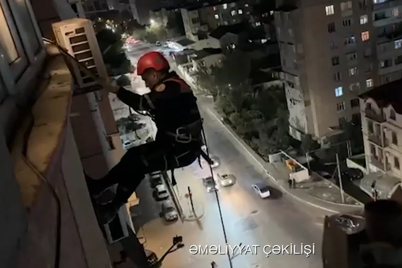 Xilasedicilər alpinist ləvazimatlarının köməyi ilə onyeddimərtəbəli yaşayış binasının səkkizinci mərtəbəsində yerləşən mənzilə eyvandan daxil olaraq 2013-cü il təvəllüdlü yeniyetməni yatmış vəziyyətdə aşkar edərək valideynlərinə təhvil veriblər.