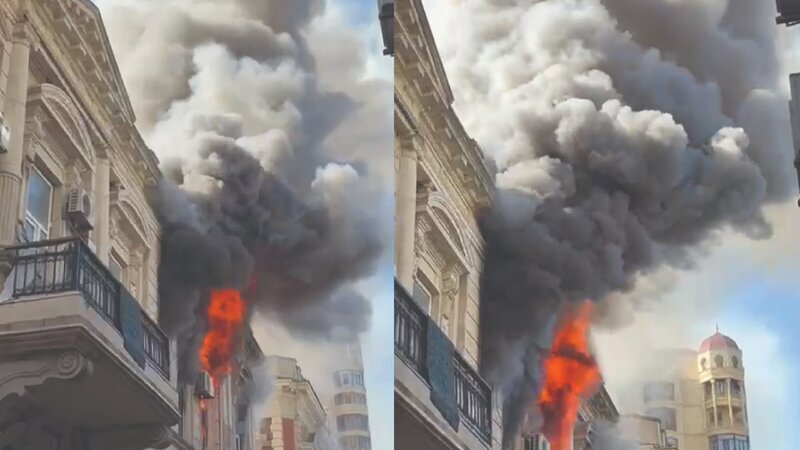 Bakının mərkəzində güclü yanğın: Vətəndaşlar təxliyə olunur - VİDEO/YENİLƏNDİ
