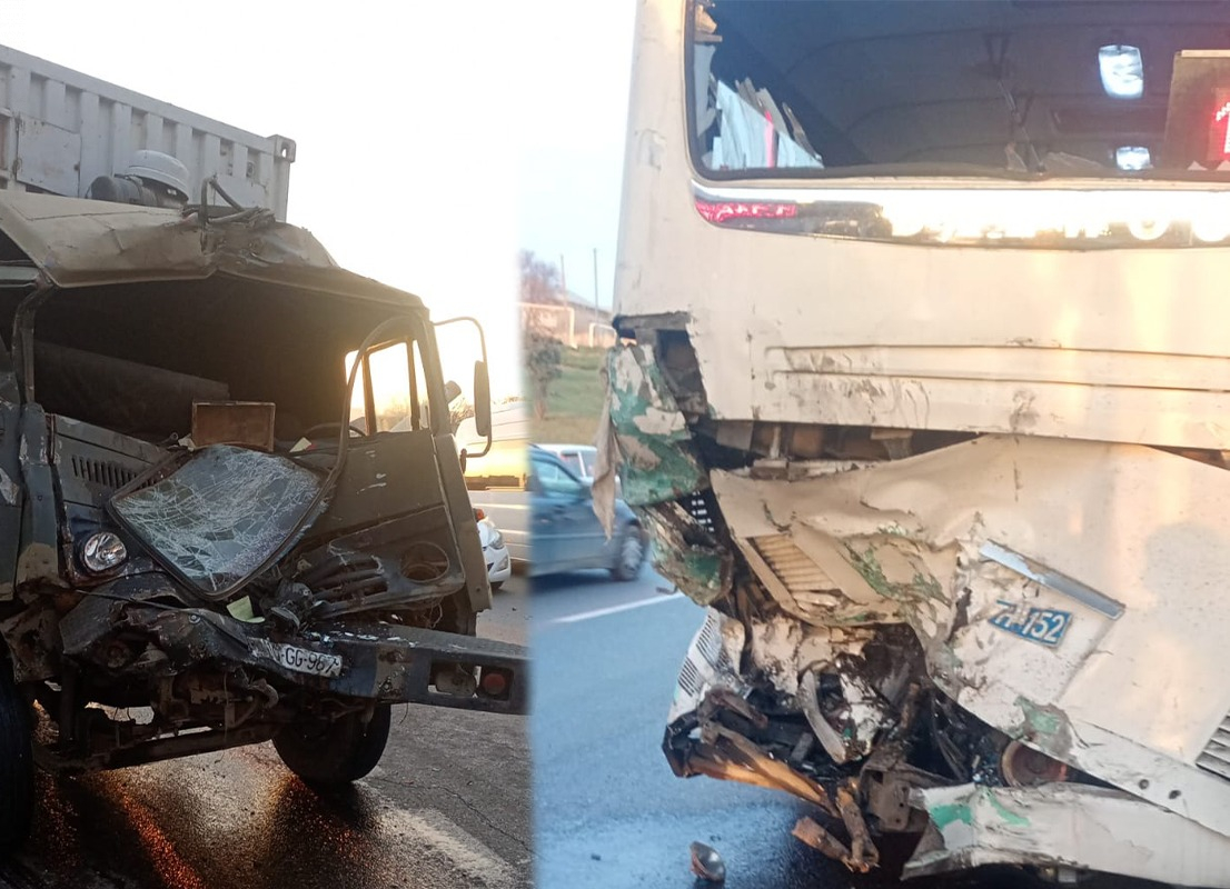“KamAZ” marşrut avtobusuna çırpıldı: 13 nəfər xəsarət aldı - FOTO/YENİLƏNDİ