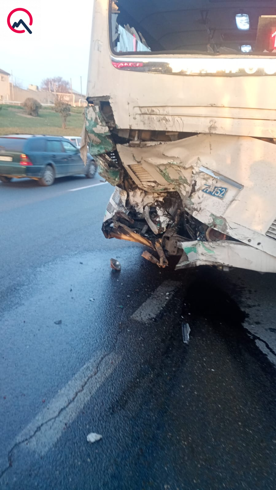 “Sürücü B.Yusibovun idarə etdiyi “Daewoo” markalı avtobus dayanacaqda olarkən yük maşını idarəetmədən çıxaraq qəza törədib. Nəticədə avtobusa xeyli zərər dəyib, həmçinin bir neçə sərnişin xəsarət alıb. Hadisə ilə bağlı aidiyyəti qurumlar məlumatlandırılıb və müvafiq araşdırmalar aparılır”.