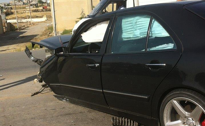 Bakı şəhəri, Qaradağ rayonunda “Mercedes” markalı minik avtomobili idarəetmədən çıxaraq yolun kənarındakı dəmir yolayrıcına çırpılıb.