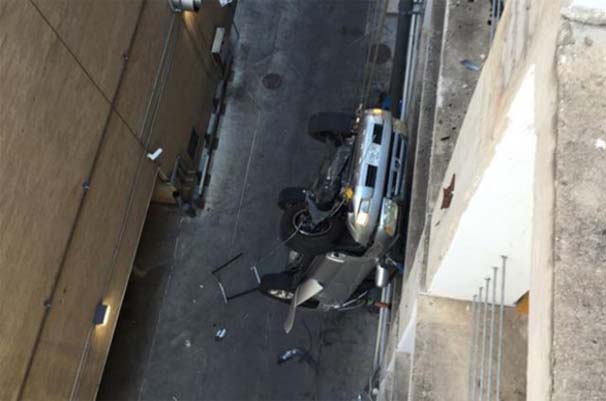 Maşın doqquzuncu mərtəbədən düşdü, sürücü sağ qaldı - FOTO