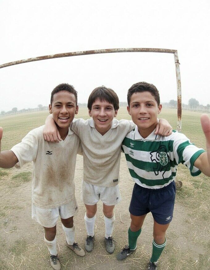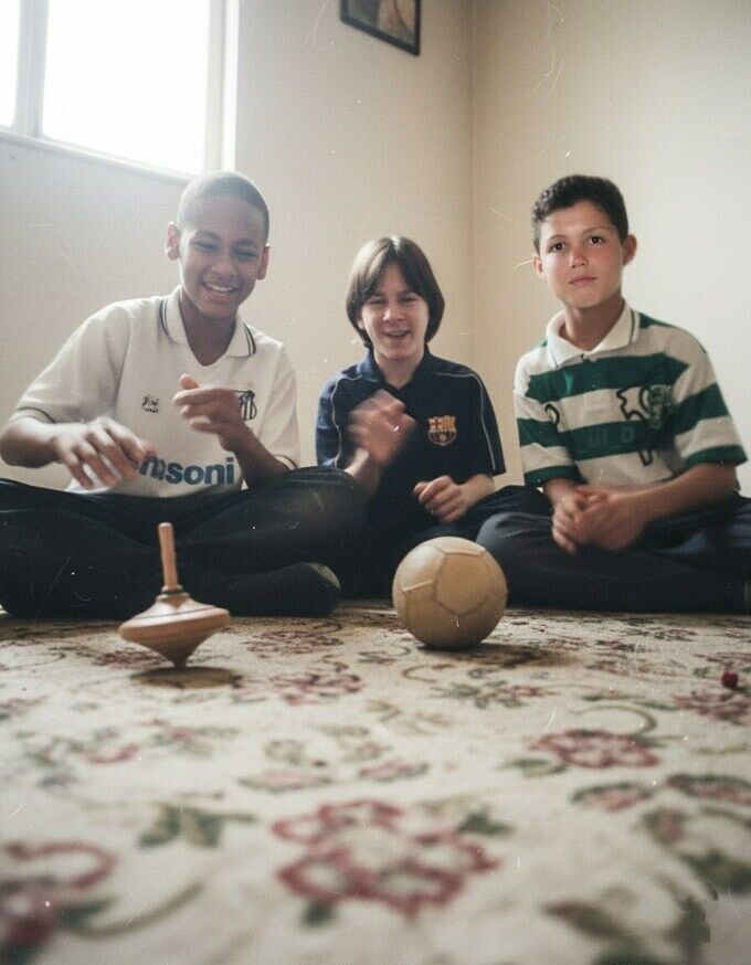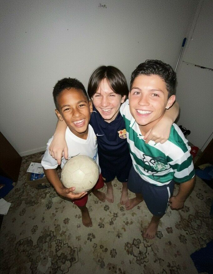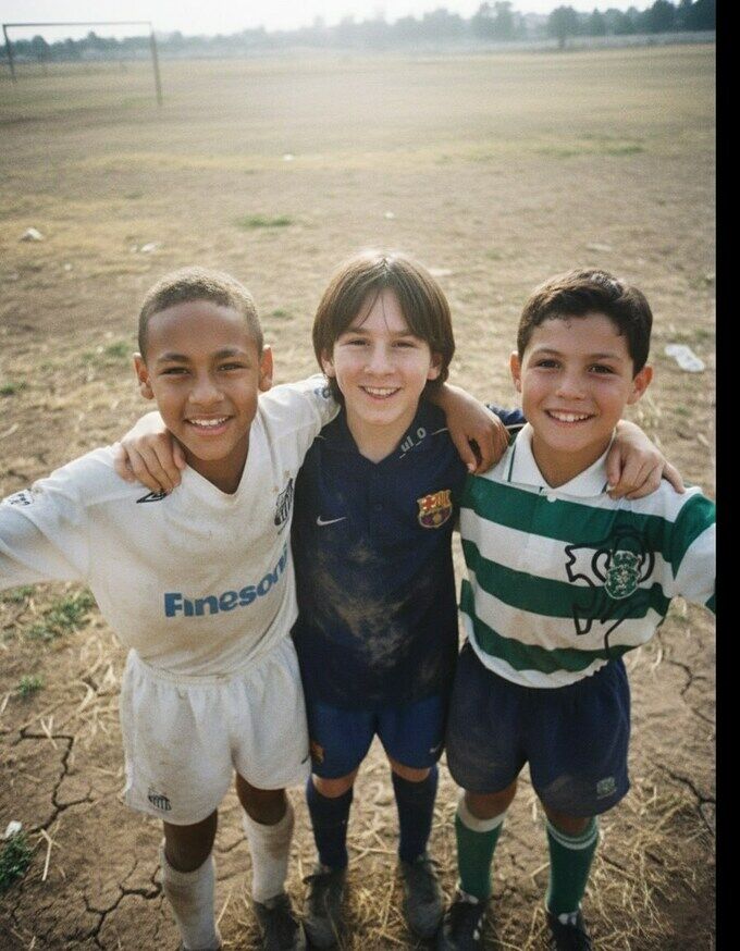 Publika.az xəbər verir ki, öz təsəvvüründə dövrünün ən məşhur üç futbolçusunun – Lionel Messinin, Kriştiano Ronaldonun və Neymarın uşaqlıq illərinin necə görünə biləcəyini canlandırıb. Müəllifin yaratdığı fotolarda futbol əfsanələri köhnə meydançada və otaqda top əlində poz verir, sanki üç yaxın dost ilk məşqlərini birlikdə keçirirlər.