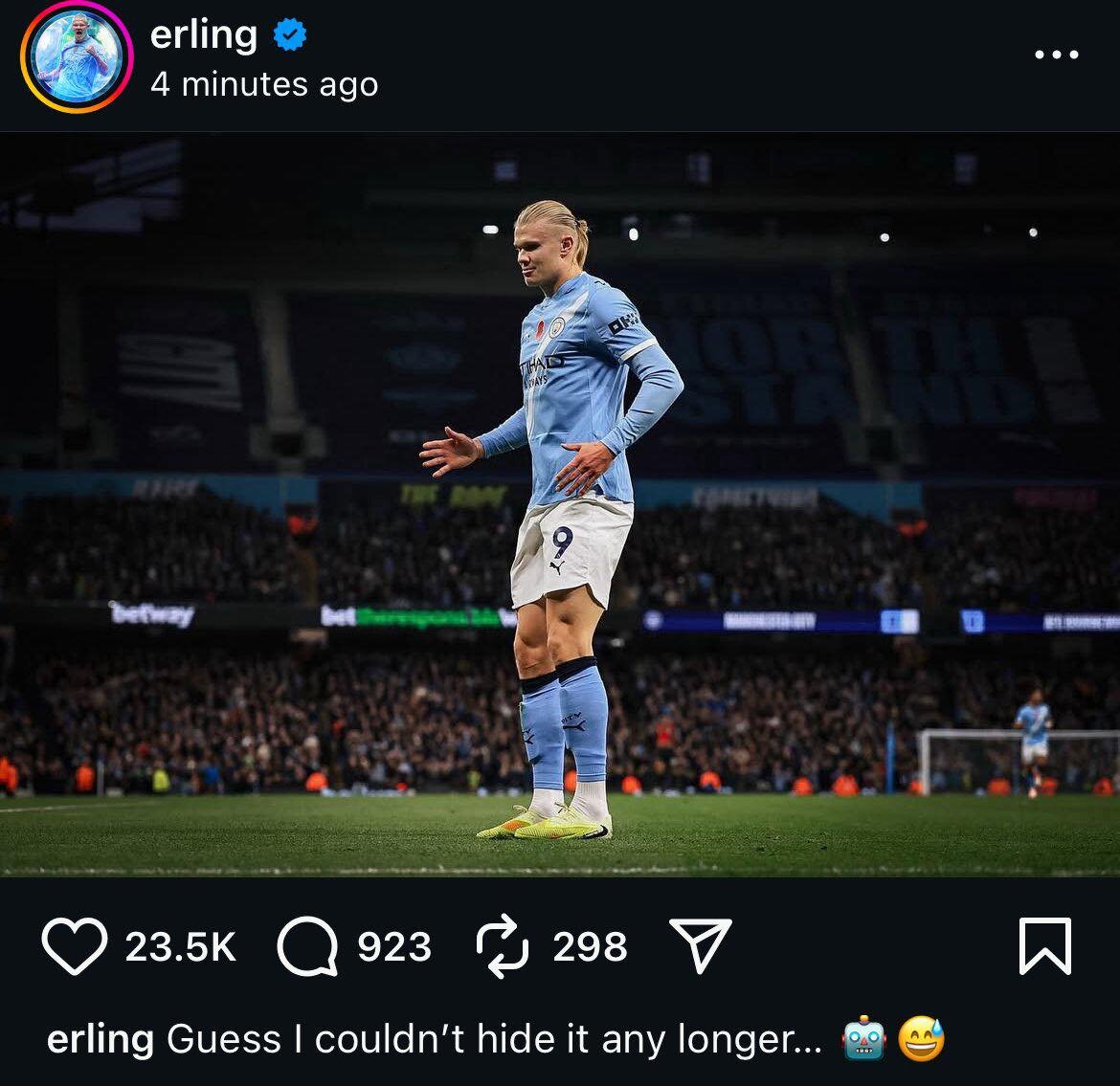 Publika.az xəbər verir ki, norveçli futbolçu həmin görüşdə dubl edib və qollardan birini robot rəqsi ilə qeyd edib. "Artıq bunu gizlədə bilmirdim", — deyə Holand sosial şəbəkədə yazıb.