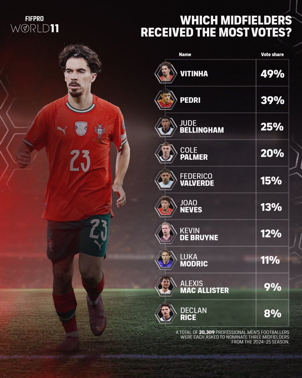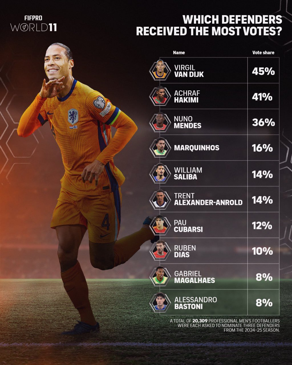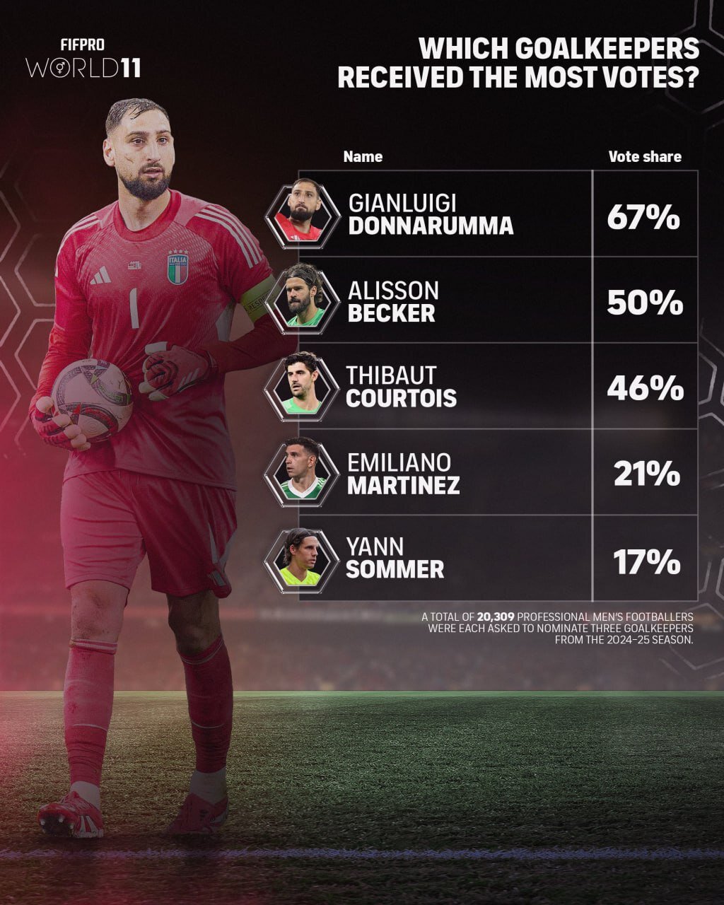 Beynəlxalq Peşəkar Futbolçular Assosiasiyaları Federasiyası (FIFPro) 2025-ci ilin yekunlarına əsasən dünyanın ən yaxşı oyunçularından ibarət rəmzi yığmanın seçki nəticələrini açıqlayıb.