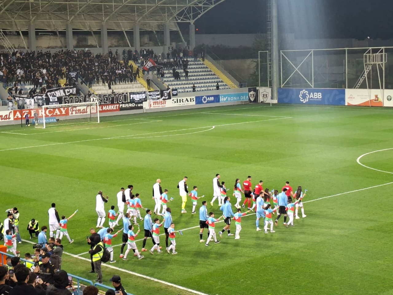 Publika.az xəbər verir ki, Azərbaycan derbisi maraqlı formada başlayıb. Komandalar meydana Vətən müharibəsində şəhid olan qəhrəmanlarımızın övladları ilə meydana çıxıblar.