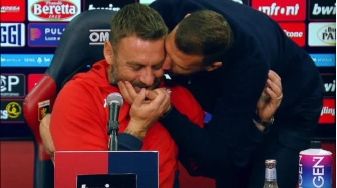 Hier, alors que De Rossi (coach Genoa) était en pleine conférence de presse, Edin Džeko (Fiorentina) lui a fait la surprise de venir le saluer !