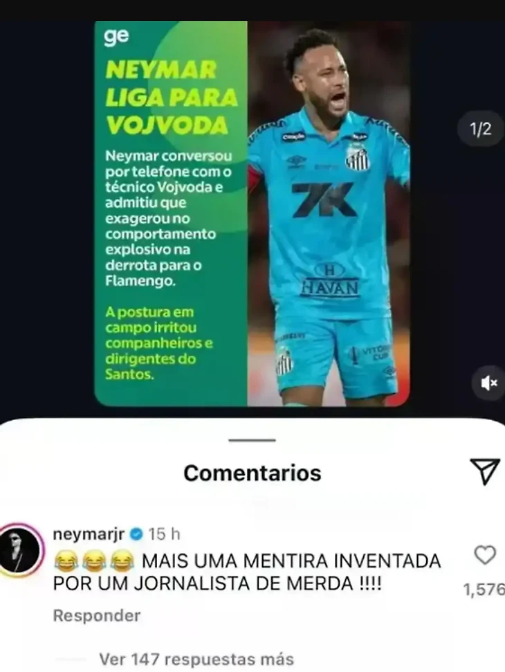 İttihamlar Neymarda əsəbi reaksiya doğurub və o, sosial şəbəkədə bu xəbərə birbaşa cavab verib. Braziliyalı hücumçu "Globo Esporte"-nin “Instagram” səhifəsindəki paylaşımın şərh bölməsində təhqirli rəy yazıb.