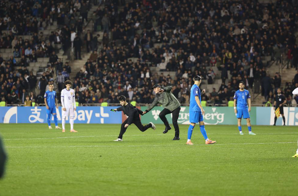 Meydana azarkeş daxil oldu, oyun dayandı - VİDEO