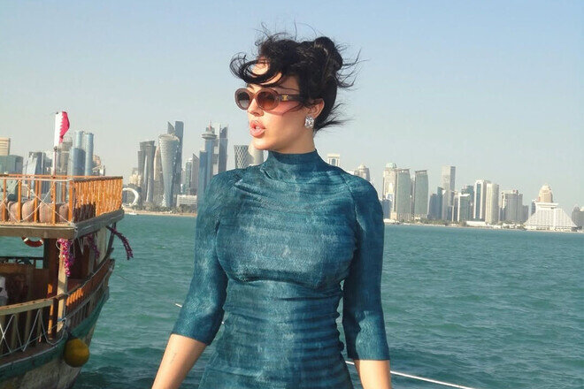 Publika.az xəbər verir ki, o, Qətərin paytaxtının futuristik siluetini fon kimi istifadə edərək kadrları bölüşüb. Corcina bədənini və stilini önə çıxaran libasda poz verib.