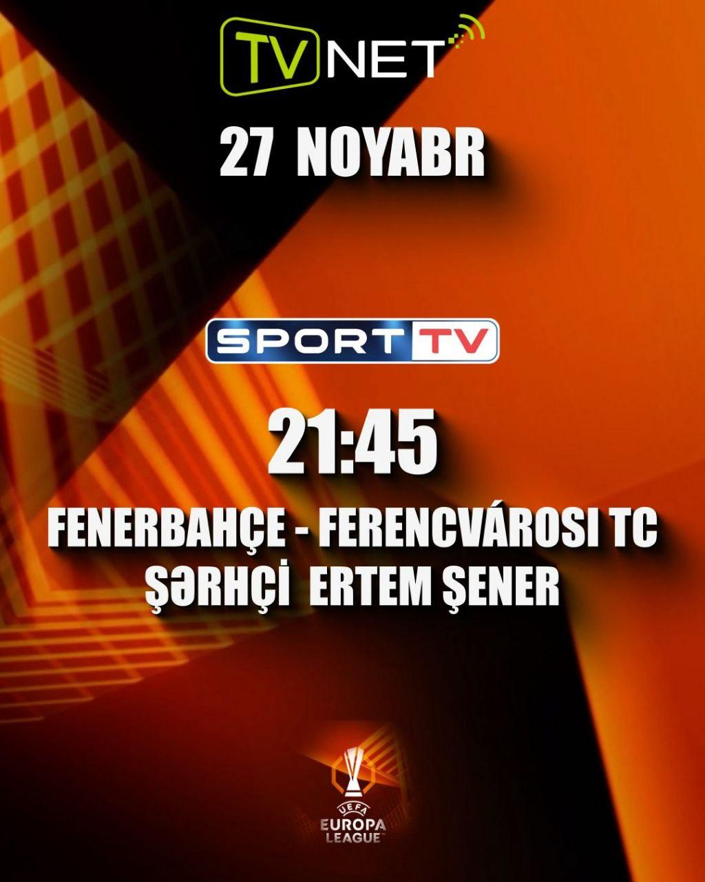 Bu gün axşam saat 21.45də TVNET abunəçiləri Fənərbaxça-Ferentsvaroş oyununa SPORT TV kanalında Ertem Şenerin şərhi ilə baxa biləcəklər.