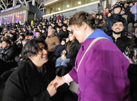 Publika.az xəbər verir ki, görüşü birlikdə izləyən azarkeş cütlüklərdən biri matçın gedişində sevdiyi xanıma evlilik təklifi edib. Bu barədə Facebook istifadəçisi Ayaz Mirzəyev paylaşım edib. Tribunada baş verən bu romantik addım ətrafdakı azarkeşlərin alqışları və səs-küylü sevinc reaksiyası ilə qarşılanıb.