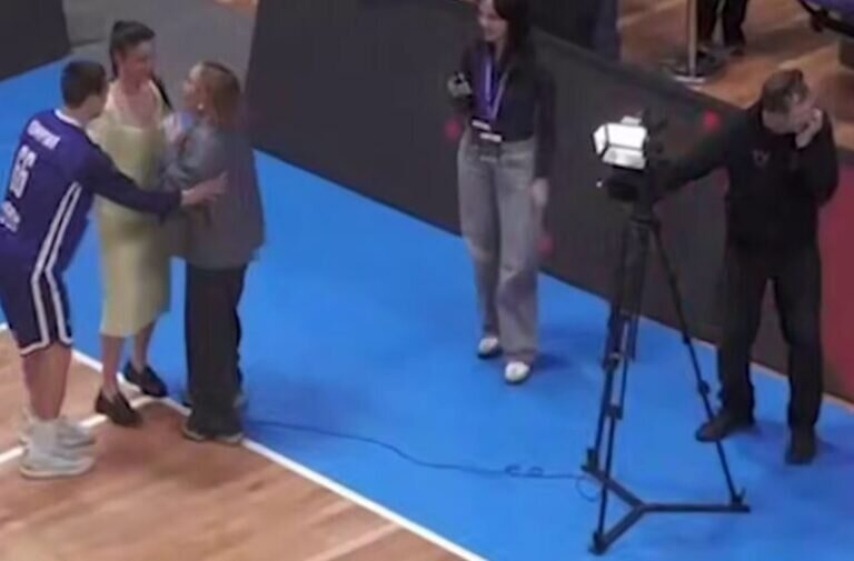 “Kupol-Rodniki”nin basketbolçusu Matvey Reşetov müsahibə zamanı təsadüfən iki qadınla toqquşub.