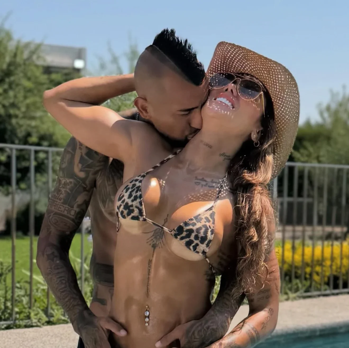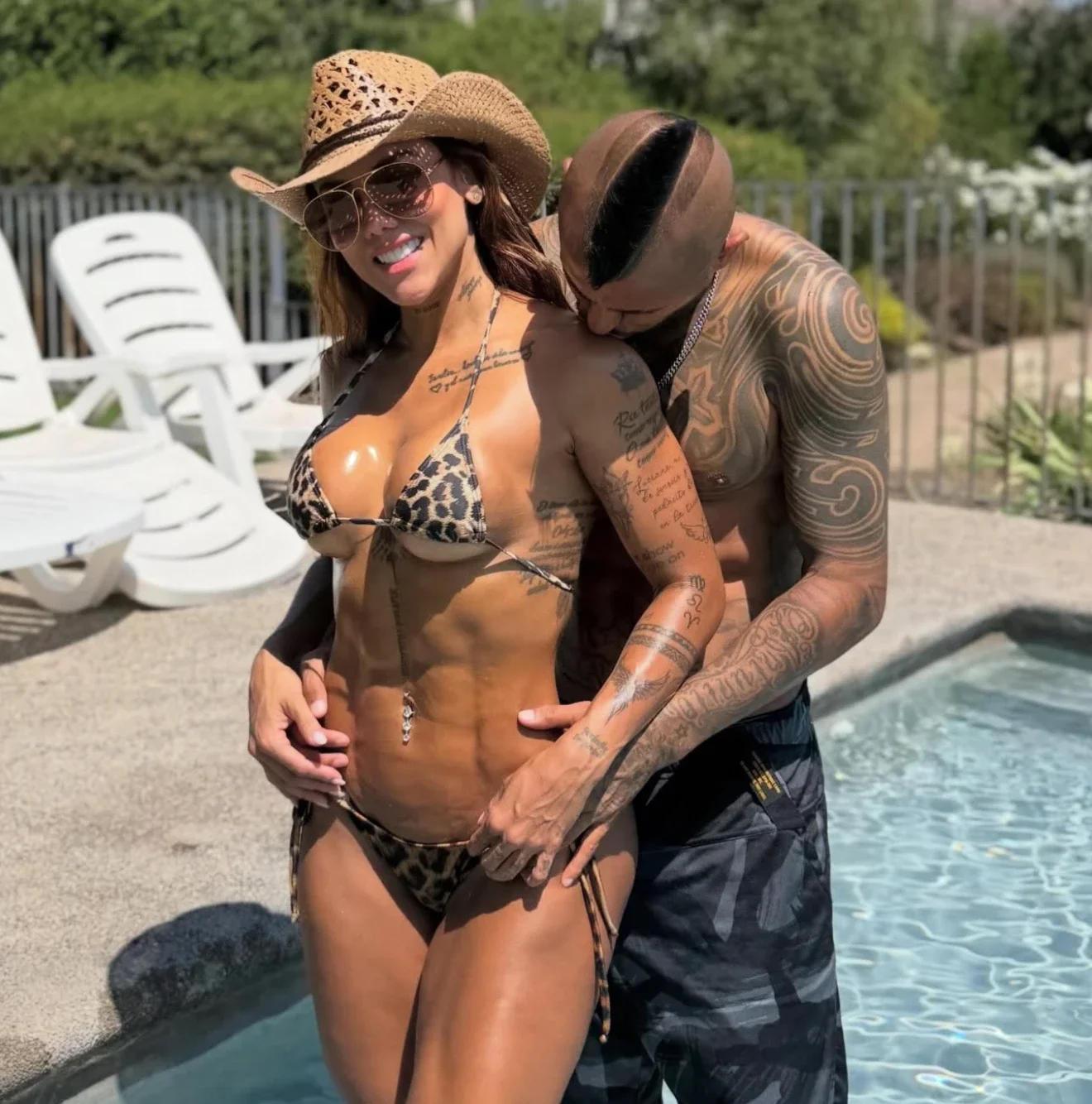 Fotolarda cütlüyün hovuz kənarında dincəldiyi, Sonyanın təsirli qarın əzələlərini və atletik bədən quruluşunu vurğulayan bikini geyindiyi görünür.
