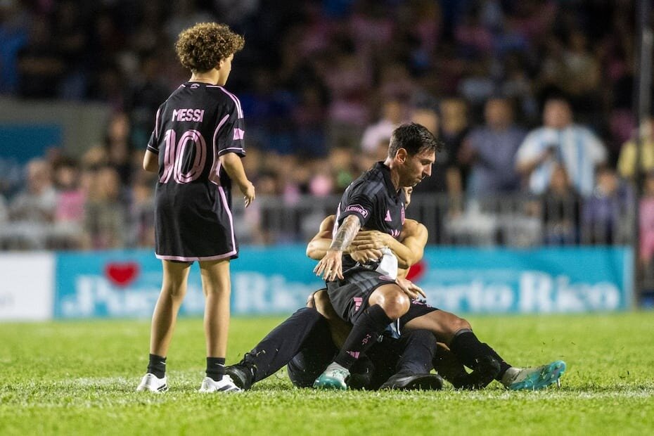 Görüşün son dəqiqələrində bir neçə azarkeş meydançaya daxil olub. Onlardan biri təsadüfən Messini yıxıb.