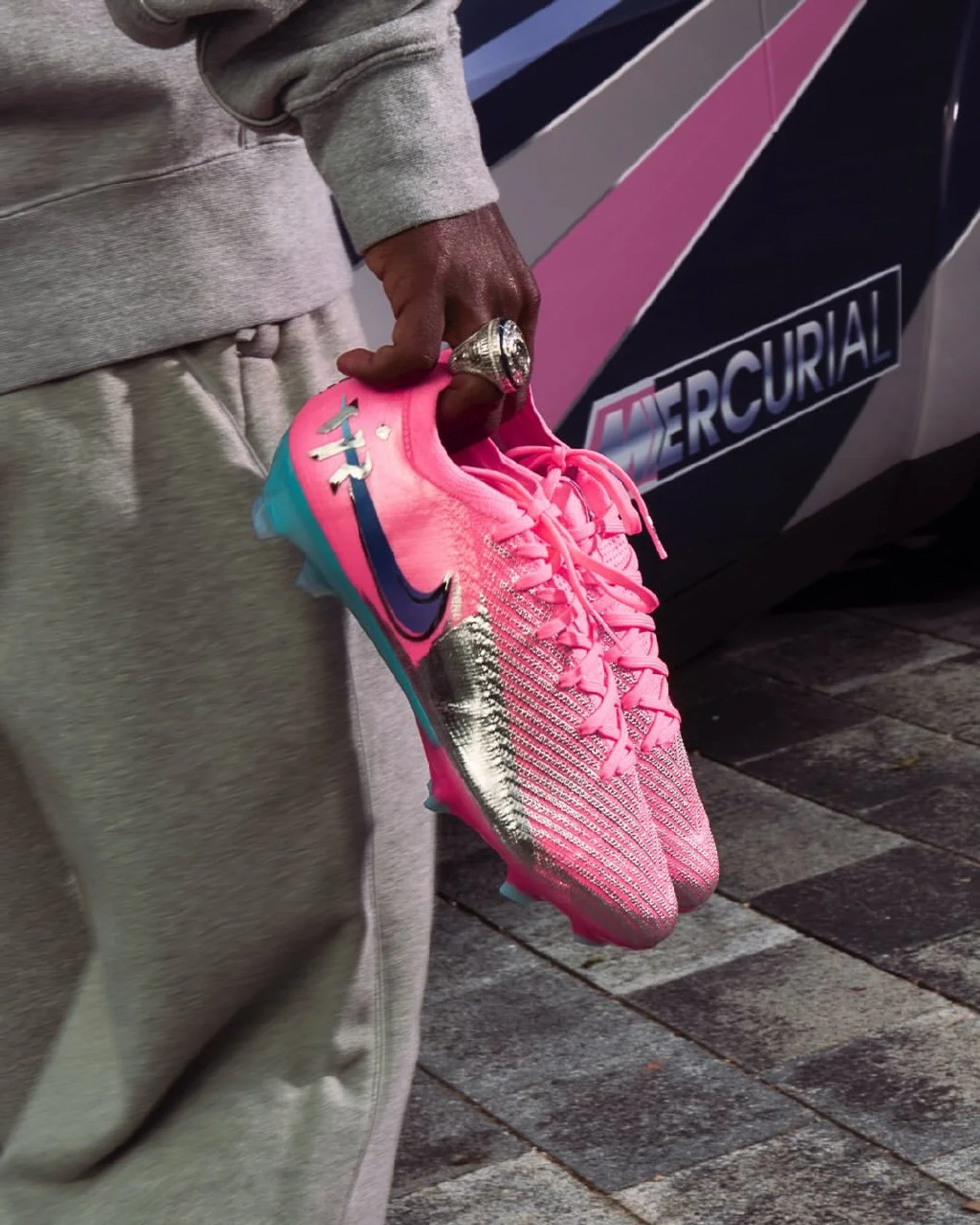 Publika.az xəbər verir ki, gün batımının rənglərindən ilhamlanan butslarda cinah oyunçusunun loqotipi və şüarı var.