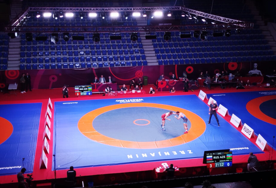 Serbiyanın Zrenyanin şəhərində keçirilən U-23 Avropa çempionatında sərbəst güləş yarışları davam edir.