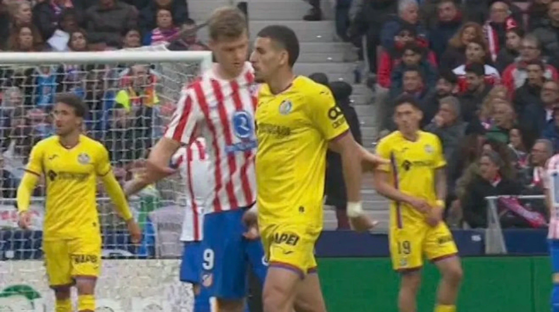 Jogador do Getafe, foi expulso porque pegou no pênis do Sørloth, do Atlético de Madrid.