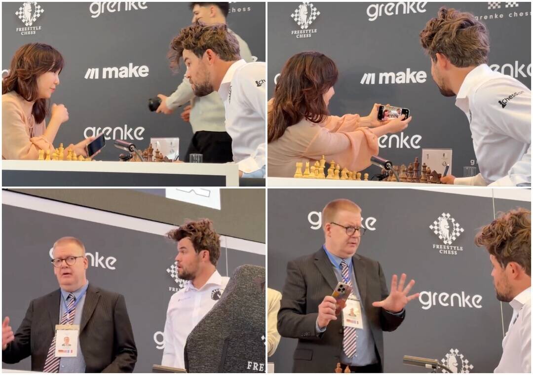 Hakim yaxınlaşıb və cihazı qazaxıstanlı oyunçudan alıb. Xatırladaq ki, qaydalar şahmat turnirlərində smartfonlardan istifadəni qadağan edir.