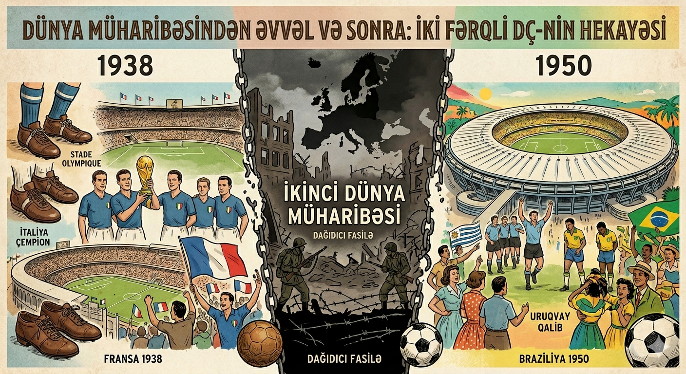 İndi isə diqqət mərkəzində yaxınlaşan fəlakətin kölgəsində keçən DÇ-1938 və futbola 12 illik fasilə verdirən İkinci Dünya müharibəsindən sonra böyük bir qayıdışa səhnə olan DÇ-1950 var. Bu iki turnir sadəcə futbol oyunları yox, bütöv bir dövrün, siyasi intriqaların və insan faciələrinin yaşıl meydandakı inikası idi.