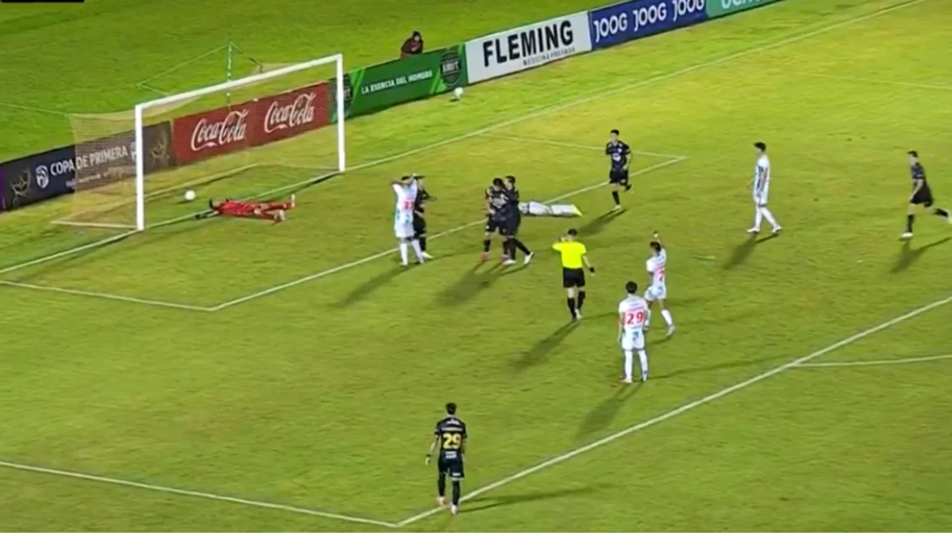 Epizodun bununla bitdiyi düşünülürdü, amma daha sonra tamamilə gözlənilməz hadisə baş verib. Rəqib komandanın müdafiəçisi topu qapıdan uzaqlaşdırmaq istəyərkən onu birbaşa hücumçunun üzünə vurub. Qəribə rikoşetdən sonra top gözlənilmədən qapı toruna daxil olub.